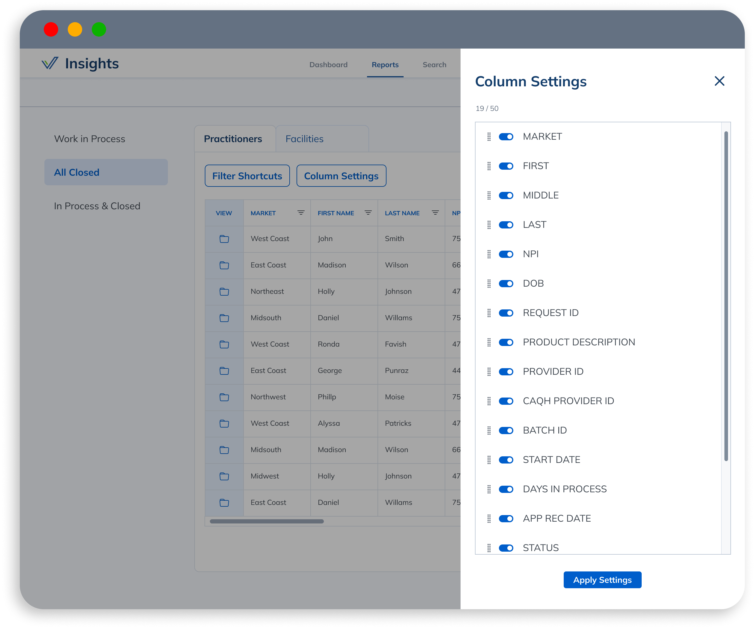 Insights is your go-to source for all your provider data, credentialing reports and PSV images.